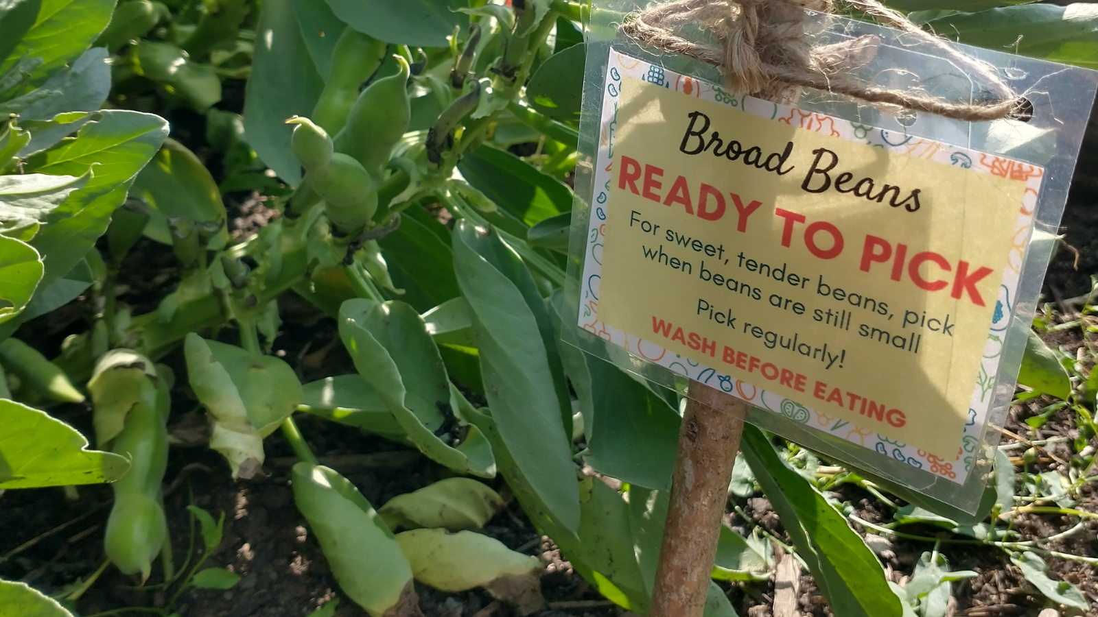 Broad beans are now ready to pick from the raised beds at the Berners Drive community garden.