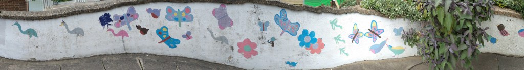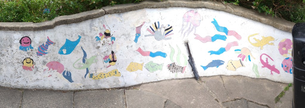 The paint was peeling but for those that remember, these were the fantastic former paintings at the planters done by Mandeville School children back in 2010.